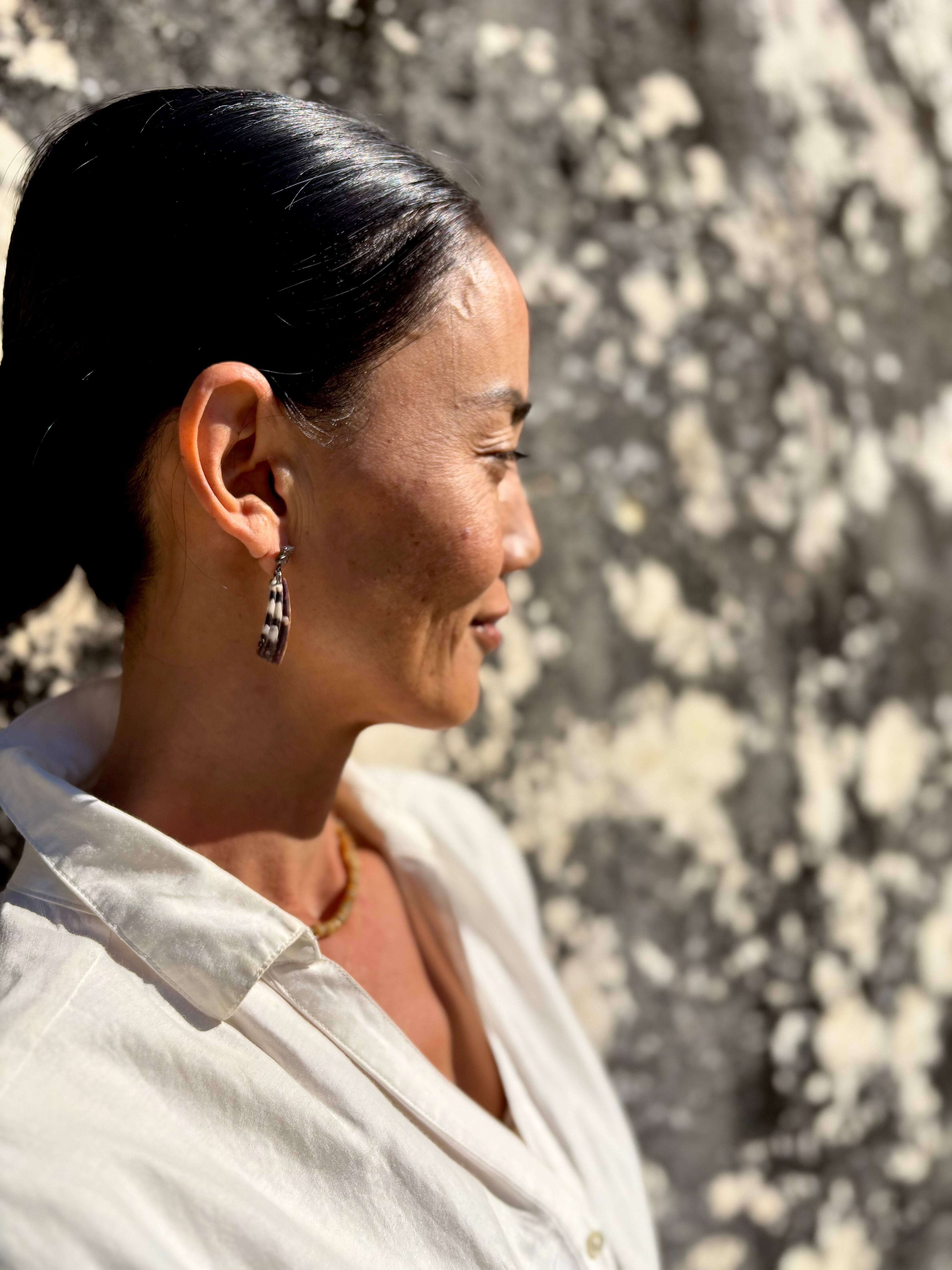 黒を基調とした貝殻から生まれた、Shell Wingタイプのピアス。